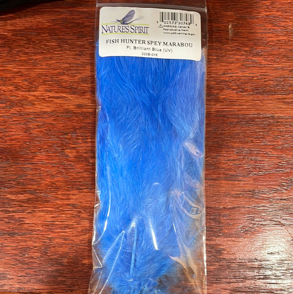 Blood Quill Spey Marabou is the same thing as regular marabou but bigger. Spey Marabou is a big fly tyer's best friend. coming in all the same colors this size of feather is great for wrapping collars, tying big intruder type patterns, and articulated streamers. Coming in at 5-7 inches long.