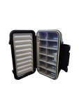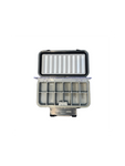 Great for steelhead eggs and beads, dry flies and droppers, panfish poppers and flies. This box features 12 compartments with a single see through lid for organization. The compartments have rounded corners for easier fly handling. ABS construction with a rubber gasket. Great box with many applications.