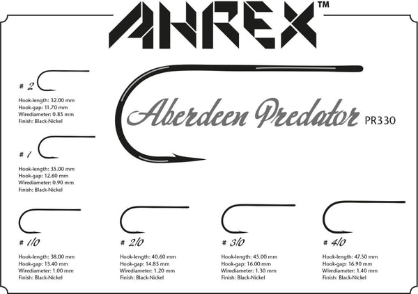 A straight eye streamer hook. Light wire and a large hook gap. If you like the classic looking Aberdeen bend on your hook, this is the one to choose. Aberdeen hooks have been a standard for a lot large predator flies for many years. Click here to download Ahrex comparison chart.