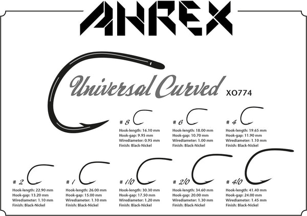 Universal Curved is as the name says a very versatile hook design. Baitfish, scuds, and as leading hook on Game Changers. Let your imagination flow! Click here to download Ahrex comparison chart.