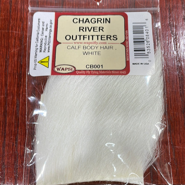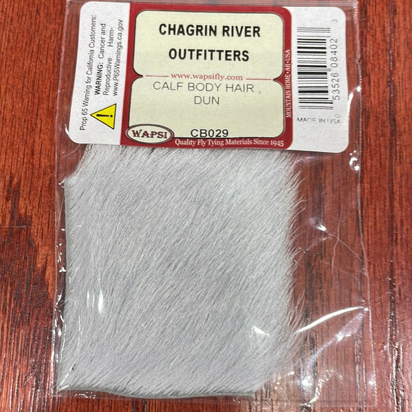 Calf body hair is a very versatile fly-tying material commonly used for hair wings and tails on flies and jigs.  This is a natural product and as such the size, hair thickness, and color can vary from one to another.