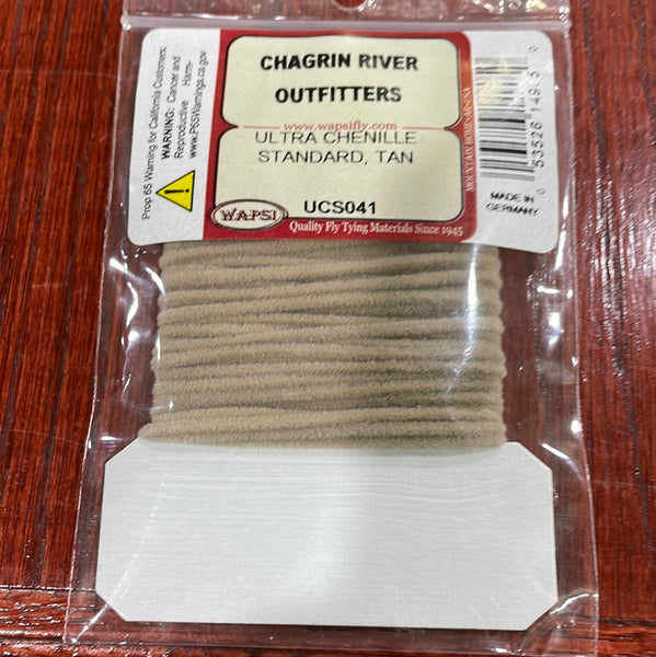 Denser and more uniform than Danville Chenille. All three sizes are excellent for nymphs and woven body flies. For San Juan Worms and Green Weenie use "Standard" and for Wooly Buggers use "Medium". Approximately 15' per package.