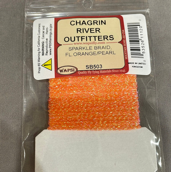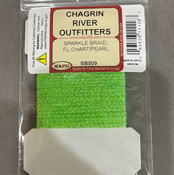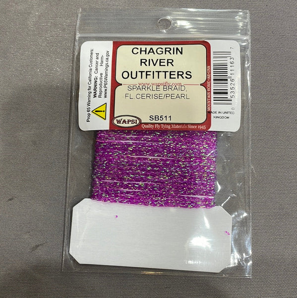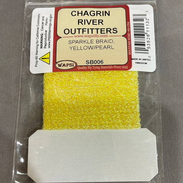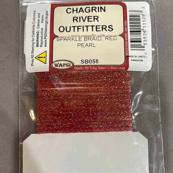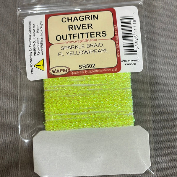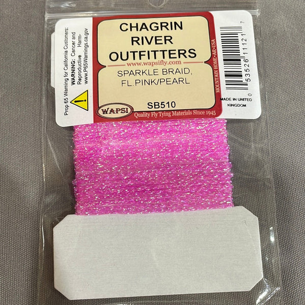 Sparkle Braid contains several strands of mylar knitted into a cordlike material. The main ingredient for muddlers and many saltwater patterns.