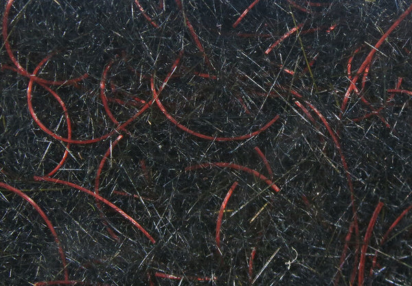 Hare dubbing mixed with fine rubber leg material. Pick out the rubber legs with a scissor point to create a wiggly hair bug. Best dubbed with dubbing loop technique.