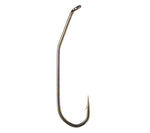 This hook was specifically designed to enhance the “natural appearance” of stonefly nymph fly patterns. In older fly-tying recipes, tiers were often instructed to bend the hook shank of a typical 3X or 4X-long hook down, that way the final product exhibits a curved or bent body more closely resembling the actual nymphs which bend between the thorax and abdomen when they free swim. Manually bending a finished hook always compromises the metal and is not recommended. These hooks come pre-shaped for perfect looking imitations. Each package contains 25 hooks.