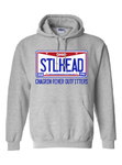 Heavy Blend sweatshirt with double lined hood and dyed to match drawcord. Front pouch pocket. Ribbed cuffs and waistband. 8 oz., 50/50 preshrunk cotton/polyester (fabrication is unique to color).