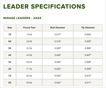 Some fluorocarbon leaders are blended with nylon, lessening the benefits of abrasion resistance and low visibility. Pure fluorocarbon Mirage™ has the highest abrasion resistance of any leader or tippet. And its refractive index is so close to that of water that Mirage is virtually invisible. With a specific gravity of 1.76, it breaks surface tension quickly and sinks quicker than nylon, perfect for nymphing. Fluorocarbon materials retain their knot and tensile strength in water. Preferred for nymphing, especially in gin-clear waters or where fish are educated. Great for large streamers too. Outstanding turnover power, the result of patented extrusion taper technology—an Orvis exclusive. Fly fishing leader preferred in spring creeks, stillwater situations, for use with large streamers, or when fishing with nymphs in clear water where trout are fished over heavily.