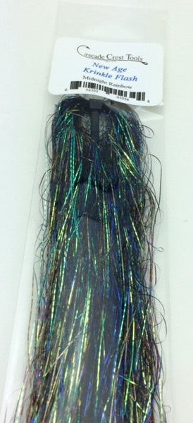 Our Age Krinkle Flash is a blend of Krinkle Flash, Holographic Tinsel, and UV Fibers. They are one of a kind. Below is a brief description of their components: