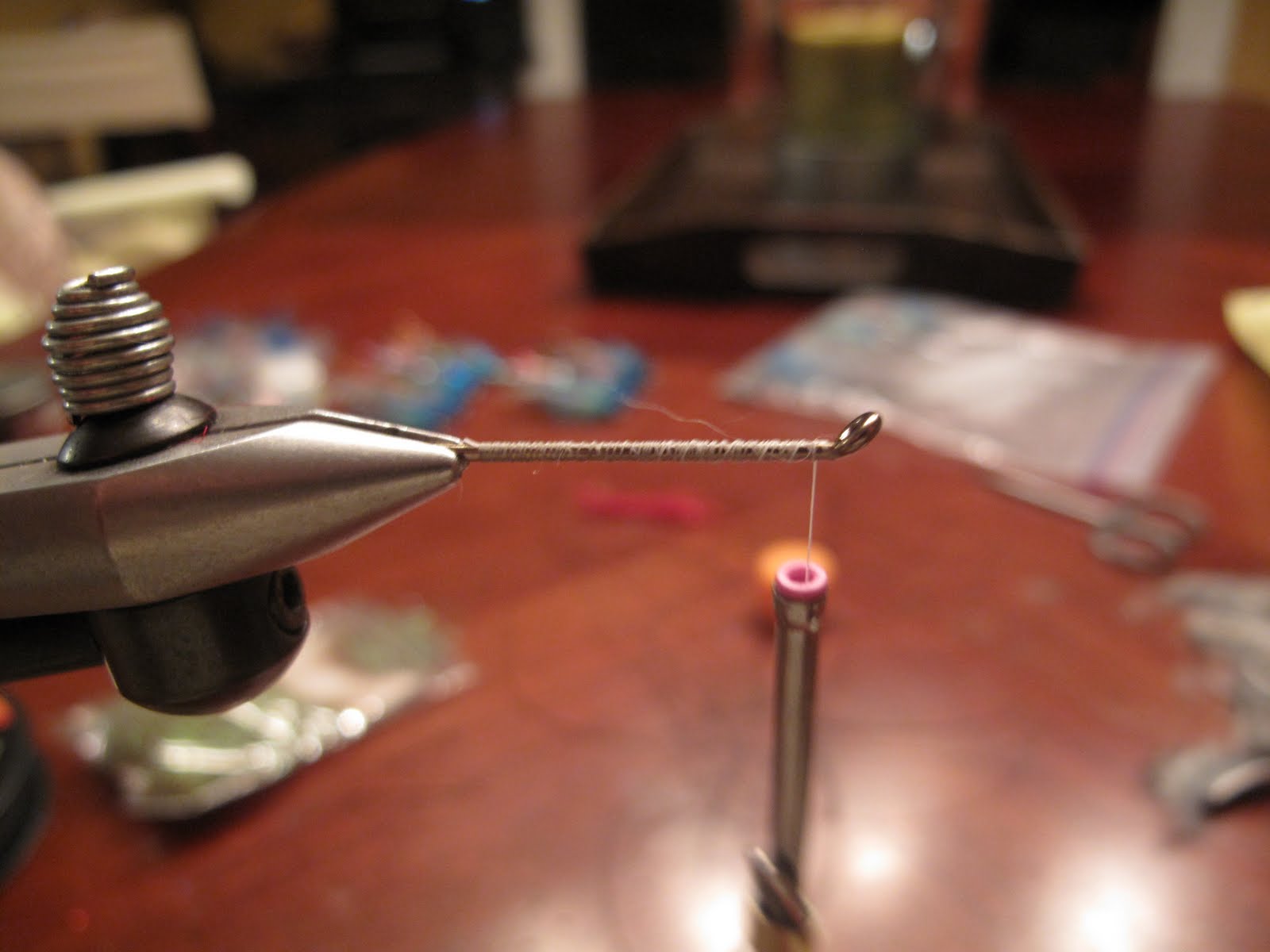 Fireline tied along top and bottom of hook for strong connection, then super glue very lightly along shank for extra strong hold(optional)