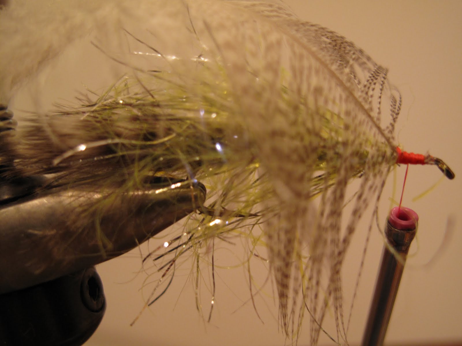 Lay down thread base and tie in Marabou tail (usually 2-3 feathers)