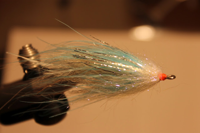 | This version uses lite blue marabou, 3 wraps silver hackle flash and finished with pearl ice dub. |